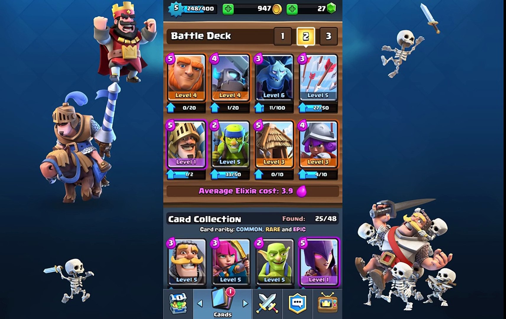 Clash Royale Cards In Arenas 2 To 7 Strength And Weakness Clash Royale Cards Clash Royale Cards. Here are informations of the arena. A barbarians card costs 5 elixir to deploy. I'll bring you my favorite deck for arena 3 today featuring the baby dragon, giant, witch. Barbarian bowl is the arena 3 in the game. Here are present the best decks in clash royale for arena 3 (barbarian bowl), this arena 3 decks are usable from 800 to 1100 trophy range, using barbarians, rage and more cards. It's time to dominate barbarian bowl arena! Barbarian bowl is the third arena in clash royale. You get access to another six cards reaching barbarian bowl, one of them being the barbarians who are used in most decks. There are only two cards unlocked in arena 3, that are based on barbarians, the barbarians themselves and the barbarian hut. Here are some tips to help you push through this arena and on to p.e.k.k.a.'s playground. Players can reach arena 3 also known as the barbarian bowl if they surpass 800+ trophies. Barbarian bowl cards (arena 3). Card unlock, best deck, trophy required, reward and donation and more. A horde of melee attackers with mean mustaches and even meaner tempers. the barbarians card is unlocked from the barbarian bowl (arena 3). Clash royale is pretty much all fun and games until you get to the barbarian bowl, where you'll need to start employing some strategy to see off your opponents.